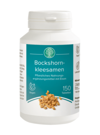 Bockshornkleesamenpulver (90.5 %), Eisengluconat (entsprechend 0.23 mg Eisen), Füllstoff: Cellulose, Trägerstoff: Polyvinylpyrrolidon, Trennmittel: Magnesiumsalze der Speisefettsäuren, Talcum, Siliciumdioxid.