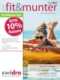 Vorschau auf die -Ausgabe 5/2022 -Ausgabe liegt ab 16. September 2022 in Ihrer swidro Drogerie oder Die nächste swidro Apotheke bereit. Es erwarten Sie wieder aktuelle Themen rund um Ihre Gesundheit und Schönheit sowie attraktive Spezialangebote und tolle Gewinnchancen. Themen dieser Ausgabe: Gesund & Vital • Verdauungsfeuer • Verstopfung • Lernhilfen Auflösung – Kreuzworträtsel 3/2022 Das richtige Lösungswort aus der lautet: WANDERUNG -Ausgabe 3/2022 Ernährung • Feigen/Datteln Schönheit & Pflege • Kinder-Zahnpflege Mensch & Wissen • Gesunde Haustiere Eigenmarke • Meerrettich Auflösung – SUDOKU 3/2022 SUDOKU mittel SUDOKU schwer 1 5 4 7 2 3 8 6 9 4 7 5 9 3 2 1 6 8 8 7 9 5 6 1 2 3 4 6 3 1 8 4 5 2 9 7 2 3 6 9 4 8 7 5 1 2 9 8 1 6 7 5 4 3 9 2 5 3 8 6 1 4 7 7 2 6 5 9 4 3 8 1 3 8 1 2 7 4 5 9 6 1 8 4 6 7 3 9 2 5 6 4 7 1 5 9 3 8 2 3 5 9 2 1 8 4 7 6 4 9 3 8 1 2 6 7 5 9 1 7 3 2 6 8 5 4 5 6 2 4 3 7 9 1 8 8 6 3 4 5 9 7 1 2 7 1 8 6 9 5 4 2 3 5 4 2 7 8 1 6 3 9 Der/Die Gewinner*in eines von 10 RENAISSANCE Hautpflege-Sets von Gerda Spillmann im Wert von je CHF 154.– wurden schriftlich benachrichtigt. Impressum Herausgeber: swidro ag, Hinterbergstrasse 26, 6312 Steinhausen, Telefon 041 740 44 50, www.swidro.ch Redaktionsteam: Bernet Thomas, Boog Miriam, Burch Alice, Henzi Carina, Langenegger Marc, Stocklin Katja, Windlin Manuela Layout | Design: otcmarketing GmbH, Riedstrasse 1, 6330 Cham, www.otcmarketing.ch Inserateannahme: swidro ag, 6312 Steinhausen, fitundmunter@swidro.ch Druck: Druckerei Kyburz AG, 8157 Dielsdorf Auflage: 293’653 Exemplare Drogerien und Apotheken finden Sie an folgenden Standorten: Aargau Gesundheit im Zentrum, Aarau | Vita Drogerie, Baden | swidro drogerie bremgarten, Bremgarten | Drogerie Venzin, Möhlin | swidro drogerie russi, Würenlos | Drogerie Unterstadt, Zofingen Appenzell A.Rh. Drogerie Bohl, Heiden | Drogerie Walhalla, Herisau | Vital Drogerie, Teufen Basel- Land Ergolz-Drogerie, Lausen | Drogerie Schläpfer, Oberwil | Drogerie Heiniger, Reigoldswil | Dorf-Drogerie Eichenberger, Therwil Basel-Stadt Drogerie Hildebrand, Basel Bern Wildstrubel-Drogerie, Adelboden | swidro drogerie elmer, Bätterkinden | Drogerie Studer, Bremgarten | Apotheke-Drogerie am Marktplatz, Büren a.A. | Stöckli-Drogerie, Eggiwil | Drogerie Studer, Fraubrunnen | Holzgang, Grindelwald | Drogerie Chartreuse, Hünibach | swidro naturdrogerie mayer, Ins | Drogerie Egger, Koppigen | Naturdrogerie Langnau, Langnau i.E. | Drogerie Wittwer, Madiswil | Drogerie Studer, München- buchsee | swidro drogerie nidau, Nidau | Schlossdrogerie Jutzi, Oberhofen | Drogerie von Känel, Reichenbach | Natur Drogerie Emmental, Rüegsau- schachen | swidro drogerie hüttinger, Schwarzenburg | Drogerie Krebser, Sumiswald | swidro drogerie täuffelen, Täuffelen | Drogerie Krebser, Wasen | Drogerie Wyss, Zollbrück Glarus Drogerie Brunner, Näfels Graubünden Drogerie-Apotheke Lacuna, Chur | Drogerie am Martinsplatz, Chur | Gesundheits Drogerie Zier, Davos Dorf | swidro drogaria alpina, Ilanz | Drogaria Zysset, Samedan | Drogaria Mosca, Scuol Luzern swidro apotheke drogerie st. michael, Beromünster | Drogerie Schlumpf, Dagmersellen | Naturdrogerie Frey, Kriens | swidro drogerie wäsmeli, Luzern | Drogerie Würzenbach, Luzern | swidro naturdrogerie rothenburg, Rothenburg | Rottal Drogerie, Ruswil | swidro drogerie schmidlin, Schüpfheim | Städtli Drogerie, Willisau | märtgass Drogerie, Zell Obwalden Allmend Drogerie, Alpnach Dorf | Drogerie Sachseln, Sachseln | Drogerie Bühlmann, Sarnen Schwyz Drogerie Gwerder, Muotathal St. Gallen Kressig Drogerie, Bad Ragaz | swidro drogerie räfis, Buchs-Räfis | swidro drogerie buchs, Buchs | Toggenburg Drogerie, Ebnat-Kappel | Drogerie Bohl, Flawil | Drogerie Schläpfer, Goldach | swidro drogerie grabs, Grabs | Drogerie Brunner, Kaltbrunn | swidro drogerie oberuzwil, Oberuzwil | Drogerie Brunner, Schmerikon | Falken-Drogerie, St. Gallen | swidro apotheke drogerie walenstadt, Walenstadt | Oedenhof-Drogerie, Wittenbach Thurgau Bahnhof-Drogerie, Amriswil | swidro drogerie rosengarten, Arbon | Drogerie Wyss, Frauenfeld | Drogerie Brunnschweiler, Steckborn | swidro drogerie sulgen, Sulgen | Apotheke-Drogerie Aemisegger, Weinfelden Uri Dorf Drogerie Ettlin, Erstfeld Zug Drogerie Hermann, Menzingen | Apotheke Arkadenhof, Rotkreuz | Drogerie Schilliger, Rotkreuz | Drogerie Hermann, Unterägeri Zürich Dorf-Drogerie Hafen, Bassersdorf | Drogerie Treib, Birmensdorf | Dorf-Drogerie Hafen, Dietlikon | vitalxund drogerie, Elgg | Center-Drogerie, Embrach | Dorf-Drogerie, Embrach | Drogerie Tschofen, Fehraltorf | Drogerie Kasser, Turbenthal | Drogerie Tschofen, Wetzikon | NaturSpross Drogerie, Wiesendangen Fürstentum Liechtenstein Centrum Drogerie, Eschen