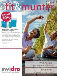 Vorschau auf die -Ausgabe 3/2024 Die nächste swidro Apotheke bereit. Es erwarten Sie wieder aktuelle Themen rund um Ihre Gesundheit und Schönheit sowie attraktive Spezialangebote und tolle Gewinnchancen. -Ausgabe liegt ab 23. April 2024 in Ihrer swidro Drogerie oder Themen dieser Ausgabe: Auflösung – Kreuzworträtsel 1/2024 Das richtige Lösungswort aus der lautet: SPORTPLATZ -Ausgabe 1/2024 Cholesterin Endometriose Gesund bewegen Leichte Dekokosmetik für den Sommer ChatGPT/KI Herz Auflösung – SUDOKU 1/2024 SUDOKU mittel 3 7 6 4 8 9 1 2 5 4 5 9 2 7 1 8 6 3 2 8 1 3 6 5 4 9 7 5 4 7 1 9 3 6 8 2 8 9 3 7 2 6 5 4 1 6 1 2 8 5 4 7 3 9 1 3 8 5 4 2 9 7 6 7 6 5 9 3 8 2 1 4 9 2 4 6 1 7 3 5 8 SUDOKU schwer 6 2 9 4 5 3 1 7 8 5 1 3 2 8 7 9 4 6 4 8 7 9 6 1 3 2 5 9 4 8 5 2 6 7 3 1 7 5 1 3 9 4 8 6 2 3 6 2 7 1 8 4 5 9 2 9 4 1 7 5 6 8 3 8 3 5 6 4 9 2 1 7 1 7 6 8 3 2 5 9 4 Der/Die Gewinner*in eines der 10 Dosen Complex 365, 90 Filmtabletten im Wert von je CHF 49.90 wurden schriftlich benachrichtigt. Impressum Herausgeber: swidro ag, Hinterbergstrasse 26, 6312 Steinhausen, Telefon 041 740 44 50, www.swidro.ch Redaktionsteam: Bernet Thomas, Boog Miriam, Burch Alice, Langenegger Marc, Scherer Sandro, Windlin Manuela Layout | Design: otcmarketing GmbH, Riedstrasse 1, 6330 Cham, www.otcmarketing.ch Inserateannahme: swidro ag, 6312 Steinhausen, fitundmunter@swidro.ch Druck: Druckerei Kyburz AG, 8157 Dielsdorf Auflage: 315’886 Exemplare Drogerien und Apotheken finden Sie an folgenden Standorten: Aargau Gesundheit im Zentrum, Aarau | Vita Drogerie, Baden | swidro drogerie bremgarten, Bremgarten | Drogerie Venzin, Möhlin | swidro drogerie russi, Würenlos | Drogerie Unterstadt, Zofingen Appenzell A.Rh. Drogerie Bohl, Heiden | Drogerie Walhalla, Herisau | Vital Drogerie, Teufen Basel-Land Ergolz-Drogerie, Lausen | Drogerie Schläpfer, Oberwil | Drogerie Heiniger, Reigoldswil | Dorf-Drogerie Eichenberger, Therwil | Natürlich Berger, Sissach Basel-Stadt Drogerie Hildebrand, Basel Bern Erlebnisdrogerie Adelboden, Adelboden | swidro drogerie elmer, Bätterkinden | Drogerie Studer, Bremgarten | Beni & Drogerie Team, Brienz | Apotheke-Drogerie am Marktplatz, Büren a. A. | Stöckli-Drogerie, Eggiwil | Drogerie Studer, Fraubrunnen | Holzgang, Grindelwald | Drogerie Chartreuse, Hünibach | swidro naturdrogerie ins, Ins | Drogerie Egger, Koppigen | Naturdrogerie Langnau, Langnau i.E. | Drogerie Wittwer, Madiswil | Drogerie Studer, Münchenbuchsee | swidro drogerie nidau, Nidau | Schlossdrogerie Jutzi, Oberhofen | Drogerie von Känel, Reichenbach | Natur Drogerie Emmental, Rüegsauschachen | swidro drogerie hüttinger, Schwarzenburg | Drogerie Krebser, Sumiswald | swidro drogerie täuffelen, Täuffelen | Drogerie Krebser, Wasen | Drogerie Wyss, Zollbrück Glarus Drogerie Brunner, Näfels Graubünden Drogerie-Apotheke Lacuna, Chur | Drogerie am Martinsplatz, Chur | Gesundheits Drogerie Zier, Davos Dorf | swidro drogaria alpina, Ilanz | Drogaria Zysset, Samedan | Drogaria Mosca, Scuol Luzern swidro apotheke drogerie st. michael, Beromünster | Drogerie Schlumpf, Dagmersellen | Naturdrogerie Frey, Kriens | swidro drogerie wäsmeli, Luzern | Drogerie Würzenbach, Luzern | Root Natur Drogerie, Root | swidro naturdrogerie rothenburg, Rothenburg | Rottal Drogerie, Ruswil | Drogerie Schmidlin, Schüpfheim | Städtli Drogerie, Willisau | märtgass Drogerie, Zell Obwalden Allmend Drogerie, Alpnach Dorf | Drogerie Sachseln, Sachseln | Drogerie Bühlmann, Sarnen Schwyz Apotheke zur Taube, Küssnacht | Drogerie Gwerder, Muotathal St. Gallen Kressig Drogerie, Bad Ragaz | swidro drogerie räfis, Buchs-Räfis | swidro drogerie buchs, Buchs | Toggenburg Drogerie, Ebnat-Kappel | Drogerie Bohl, Flawil | swidro naturdrogerie goldach, Goldach | swidro drogerie grabs, Grabs | Drogerie Brunner, Kaltbrunn | swidro drogerie oberuzwil, Oberuzwil | Drogerie Brunner, Schmerikon | Falken-Drogerie, St. Gallen | swidro apotheke drogerie walenstadt, Walenstadt | Oedenhof-Drogerie, Wittenbach Thurgau Bahnhof-Drogerie, Amriswil | swidro drogerie rosengarten, Arbon | Drogerie Wyss, Frauenfeld | Drogerie Brunnschweiler, Steckborn | swidro drogerie sulgen, Sulgen | Apotheke-Drogerie Aemisegger, Weinfelden Uri Dorf Drogerie Ettlin, Erstfeld | Drogerie Andermatt, Andermatt Zug Drogerie Hermann, Menzingen | Apotheke Arkadenhof, Rotkreuz | Drogerie Schilliger, Rotkreuz | Drogerie Hermann, Unterägeri Zürich Dorf-Drogerie Hafen, Bassersdorf | Drogerie Treib, Birmensdorf | Dorf-Drogerie Hafen, Dietlikon | vitalxund drogerie, Elgg | Center-Drogerie, Embrach | Dorf-Drogerie, Embrach | Drogerie Tschofen, Fehraltorf | Drogerie Kasser, Turbenthal | Drogerie Tschofen, Wetzikon | NaturSpross Drogerie, Wiesendangen | Drogerie Parfümerie Zollikon, Zollikon Fürstentum Liechtenstein Centrum Drogerie, Eschen